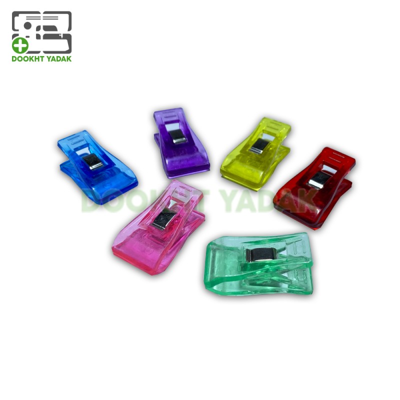 گیره سایز بزرگ برای فیکس ماندن پارچه در هنگام برش زدن استفاده می شوند تا پارچه در هنگام کار تکان نخورد . این محصول از جنس پلاستیک شفاف می باشد و رنگ بندی متنوعی دارد که به صورت رندوم ارسال می شود.
