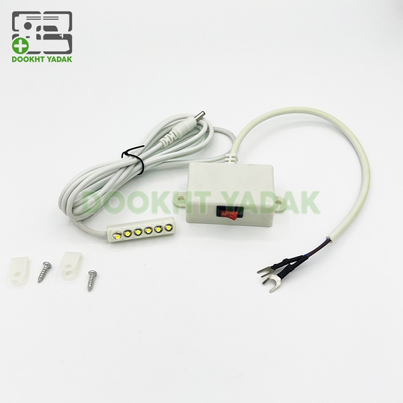 در زیر تنه چرخ ، کنار میل سوزن و میل پایه یک چراغ LED متصل می شود که وظیفه آن روشن کردن اطراف سوزن و پارچه در حال دوخت می باشد. شما می توانید چراغ LED آهنربایی 6 عددی که دارای 6 عدد لامپ مهتابی می باشد را به صورت جدا تهیه کرده و در زیر تنه چرخ خود نصب نمایید تا نور کافی و بسیار روشنی را جهت دوخت و دوز در اختیار داشته باشید.
